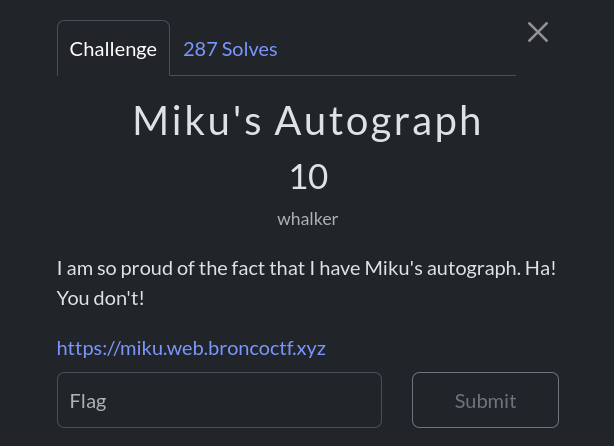 When I visited the challenge website, I found a Hatsune Miku Fan Club page. It showed that two users were registered: